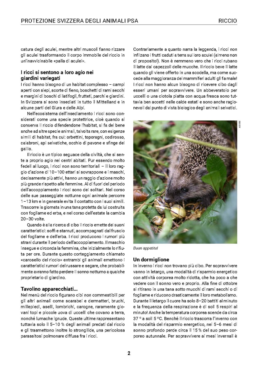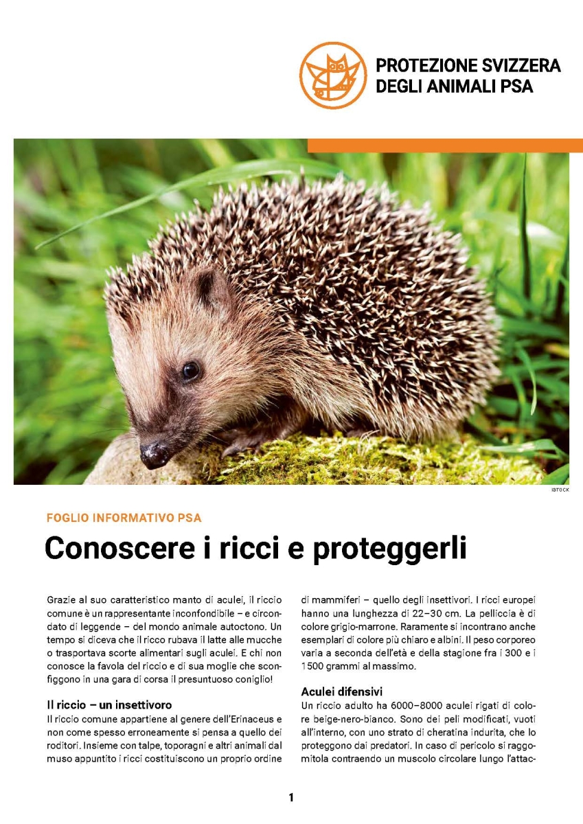 Il riccio Quale sezione della PSA siamo in prima linea per la protezione del riccio e sosteniamo attivamente la sua tutela.